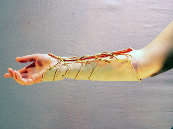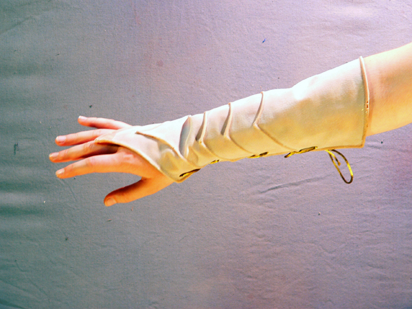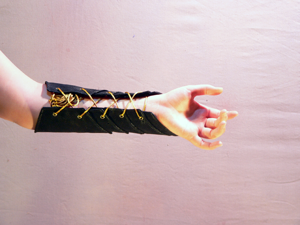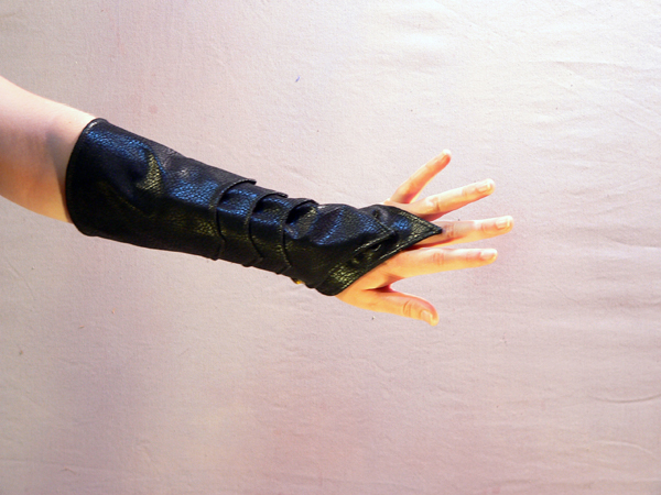 We also have our latex bracers that are similar to the cloth bracers. Here are the two side by side. They can be bought as raw latex or prepainted!