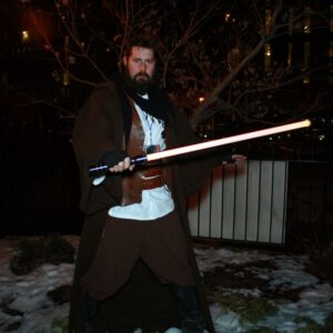 On Saturday we hung out with our friends Coy and Joe, and enjoyed all the room parties! Paul did his Ice King, and I tossed together a Jedi. With the winter beard I have been growing, it only fits if I have a brown robe and lightsaber.