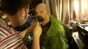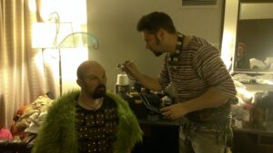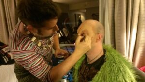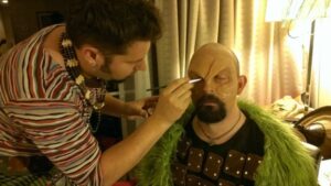James and Anie showed up at the booth early on Friday to get their masks early to try out make up and adhesives. On Saturday, they showed up to join our group and came up to the room to have their make-up done by yours truly! They were great to work with and handled the make up chair very well!