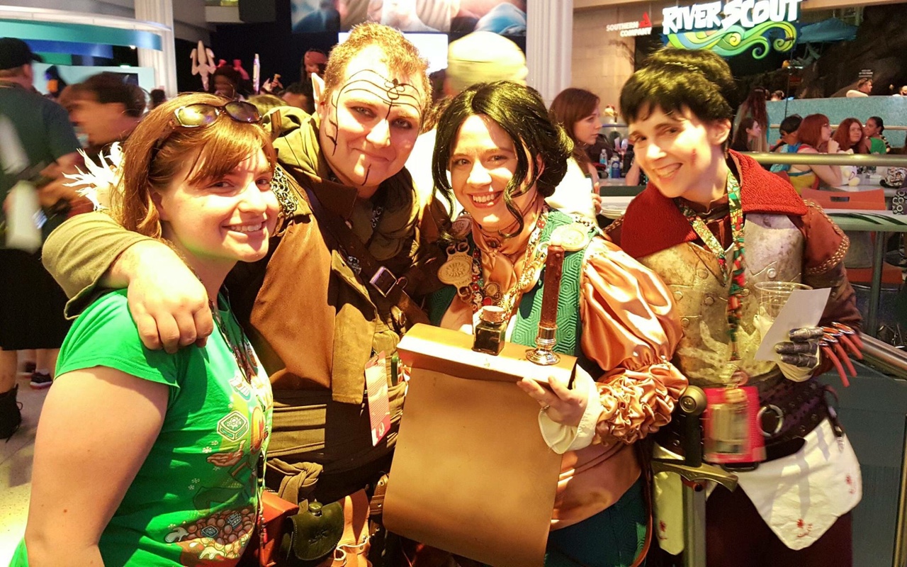 When I discovered I could be an elven character that wasn’t stick thin with long flowing golden locks, I was even more over the moon. Add to that awesome facial tattoos, leather, chainmail, vaguely militaristic styled medieval garb and it was all over. All I needed was a little push and it was fairly simple for my cosplay group to talk me building my Dalish Inquisitor “Mahanon Lavellan” and joining them for a Dragon Age: Inquisition group at DragonCon 2015. In addition to my own cosplay, I constructed my fiancee’s Josephine Montilyet costume as well as assisting on my roommate’s Cassandra Pentaghast cosplay.