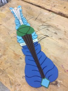 Since it looks kind of 3D on the design, I decided to make them in 5mm foam, which I then glued on the same gold stretch fabric as the tabbern belt. I directly glued it on the blue fabric, which was really scary since I hadn’t done that before, and I didn’t really knew if it was going to work or not. Luckily, it ended up looking really nice, so I was pretty pleased with that! I then sewed on the gold bias tape I had made earlier, and then attached some more gold lace on the sleeves.