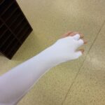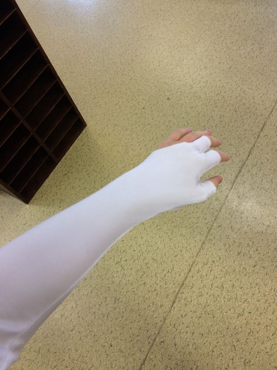 The gloves are made out of the same white stretch material as the white top. They were pretty easy to make, I just made a pattern, sowed it together and added the same button with the pearls on the tip of one of the fingers to resemble the ring she wears. She also has these gold triforce symbols on the back of her hand, so I made them out of 2mm craft foam which I primed with wood glue and water, and painted them gold. Lastly, I bedazzled them with some small clear rhinestones. She doesn’t really have it in the design, but I wanted to be a little extra and it was such a small extra detail. It ended up looking really nice so I’m glad I did that!