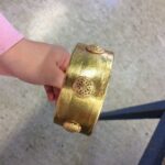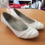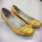I used some old white shoes that I had, and painted them gold, and glued on some of the same rhinestones that I used on the gloves. I also added one of the pearl buttons again, and they ended up looking really cute and they fitted the rest of the outfit. It was really hard to find any pictures of the shoes since they’re barely visible, so I added some details I felt looked good with the costume.