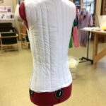 On the inside of the dress I used a nice red satin, and I also bought some gold stretch for her tabbern belt thingy. Lastly, I bought some gold fabric with some interesting flower details on it, which I used for the bottom of the dress. You can’t really see the details unless you go up close, but it looks really fancy and fit the style of the costume perfectly.