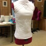 The white top was so much fun to make! On the design, she has this quilted pattern on the front and the back, so I sowed together two pieces of the fabric, and put some of that thin cotton type of fabric in between to give more dimension when I was going to sow on the pattern. I drew the pattern design on some paper, pinned it directly on the top, and followed the lines with my sowing machine. When I had sown all the lines, I ripped the paper off, and the pattern looked perfect on the top! It was just like drawing with a sowing machine, and it was so much fun to do! At the end, I added a collar, and sowed on a little button which had some pearls and gold details to make it look even more “princessy”