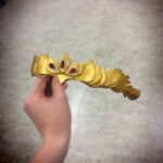 The tiara is made out of white worbla, which I then primed with wood glue + water, and then painted the same gold I’ve used on the rest of the costume. I also put some gloss paint on there as well to seal the paint, and to give it a nice “royal shine” to it. Zelda has these pretty, red diamonds on the center of the tiara, so I bought some nice red rhinestones which had these tiny, but cute silver rhinestones on the edge, so I just glued them on. When I wear it, I just use some pros aide or spirit gum on my forehead, and glue it on. It fits perfectly to my head and it stays on all day^^