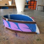The belt she has on the blue top is just made out of some turquoise cotton fabric, with some bias tape on the sides, which I painted to be the same gold colour as the rest of the costume. I also cut the gold stretch fabric in the wavy shape she has, and glued it directly on the belt. I also glued some rhinestones on there for details. The triforce buckle thingy is made out of worbla, which I covered in the same stretch gold fabric I have used on the rest of the costume.