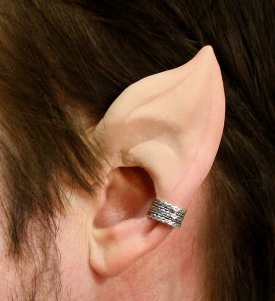 The head piece and broach were purchased from The Noble Collection. In spite of the hefty cost, I simply could not pass down the beauty of the officially licensed version of her head piece. It was flawless, and I could imagine it looking so perfect with the rest of my costume. And if I wanted the official head piece, I also needed the matching broach! A lot of saving up and a few coupon codes later, I had the perfect adornments for my costume. The back of the broach was modified and sewn into my dress, and the head piece was set aside for use with the complete costume. Then, I only needed the perfect wig and ears! For my wig, I visited my favorite online wig shop, Arda Wigs. I knew they would have something that would work perfectly, and just as I expected, they did. I end up getting the Arwen wig in Dark Ash Blonde. It was a lace front wig, which meant I could cut the front to match my natural hairline perfectly. This made the wig seem much more realistic, and difficult for observers to realize it wasn’t my real hair. To style it, all I had to do was pull back the majority of the hair from the front, leaving only a few long strands to hang in front of me. The rest was secured in place using a couple bobby-pins, which the head piece hid. And for the ears, I knew exactly where to come – Aradani Studios!