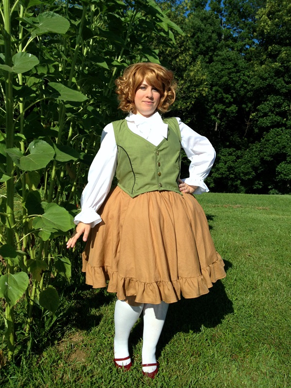 Siren’s design shows Bilbo wearing knee-socks, but I changed it to white tights because I don’t have elegant knees. Or something. I ordered semi-opaque dance tights from Capezio on Amazon (good thing they have easy returns because I accidentally ordered light pink the first time). Dance tights are nice and strong and sort of hold you in (and the opacity is much better than with panty-hose). I’ve recently started using them with all of my costumes, after they came so highly recommended from various sources.