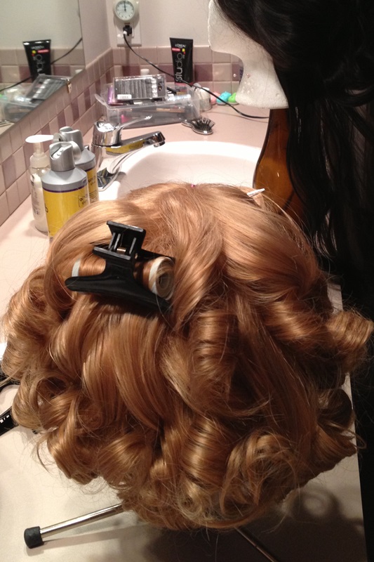 My wig is an Inigo in Sandy Brown from Arda Wigs. I like getting wigs from them because they’re thick, good quality, and heat-resistant. They also ship quickly, which is a major plus when working on things in a pinch. I set the original curls with hot curlers, and I can easily go back with a curling iron for touch-ups.