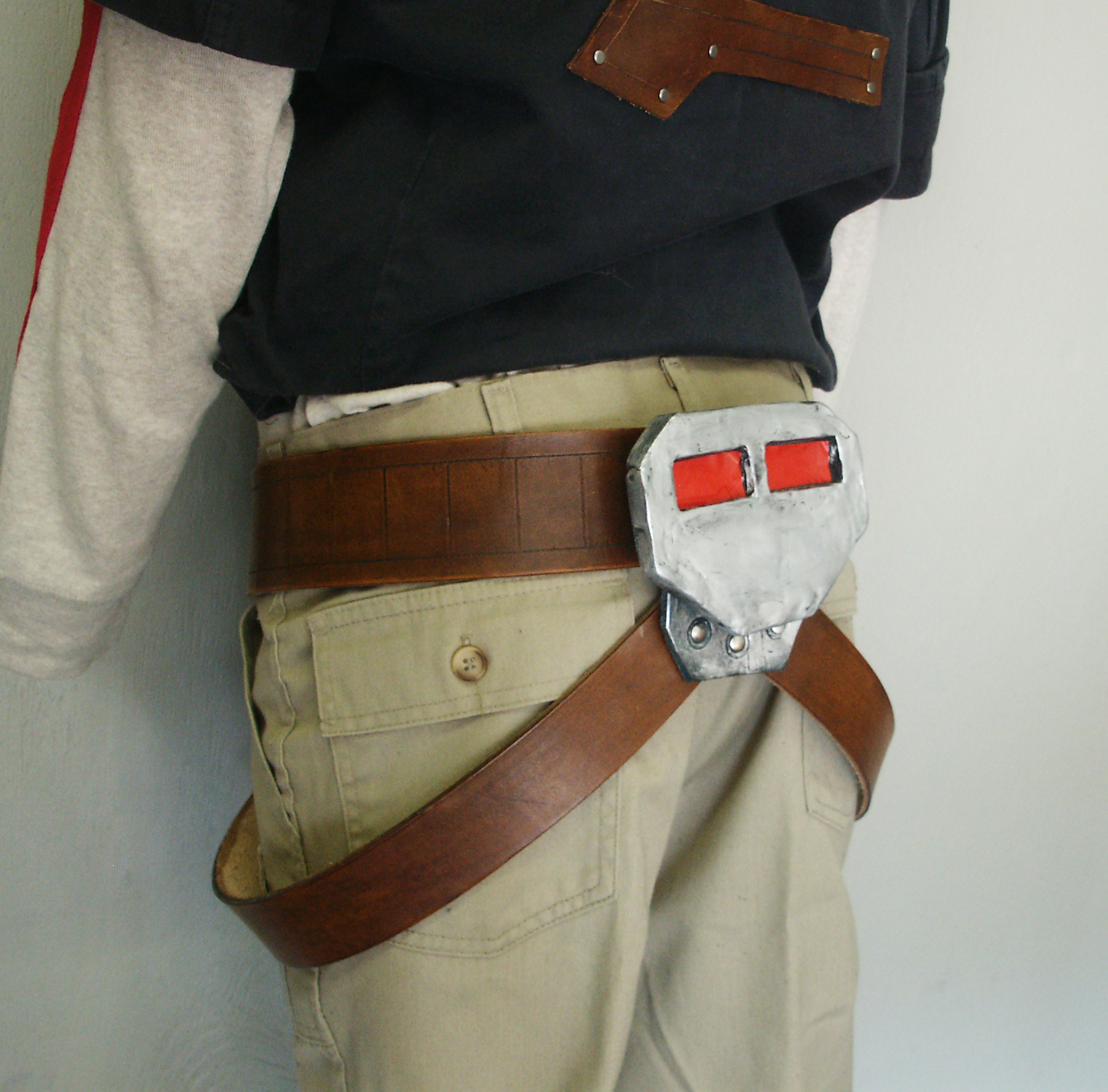 So this is based on my characters current belt, with is a double belted leather looking belt. I have sculpted the belt buckles, and they are being cast at the moment. These are pretty rough, I hope to make some more refined ones by Connooga and have them back lit with LEDs.