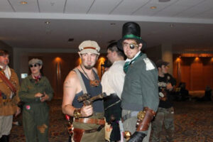 The design for these costumes started in 2008, when we decided we wanted to have a big crew from Dragoncon. Each of us chose a profession for the character that matched our own personality. (Which is why Paul is the Captain).
